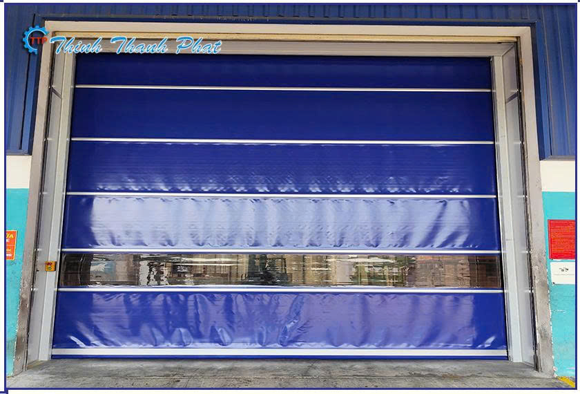Cửa cuốn nhanh (hay còn gọi là cửa cuốn tốc độ cao) là loại cửa công nghiệp được thiết kế đặc biệt với tốc độ đóng mở cực nhanh. Màu xanh dương chỉ là một lựa chọn màu sắc phổ biến cho phần màn bạt PVC của cửa.