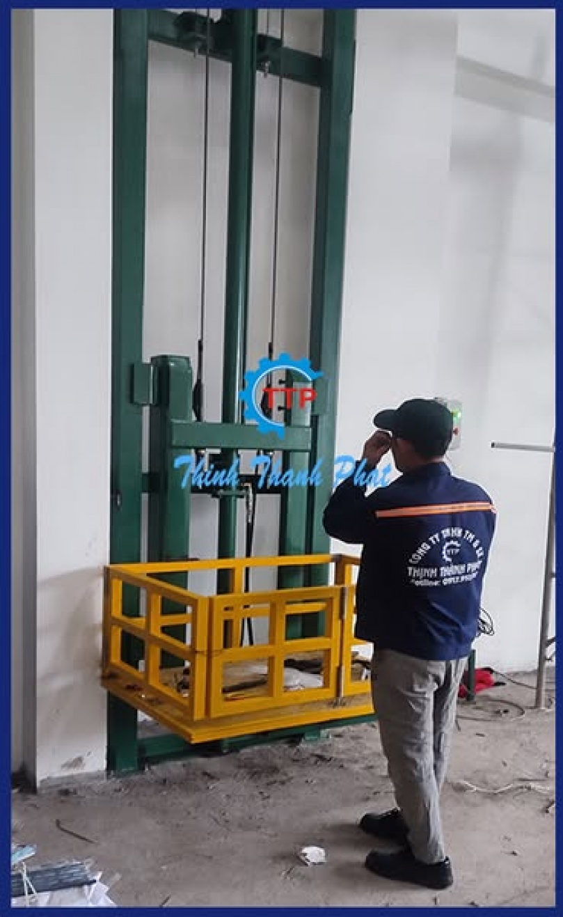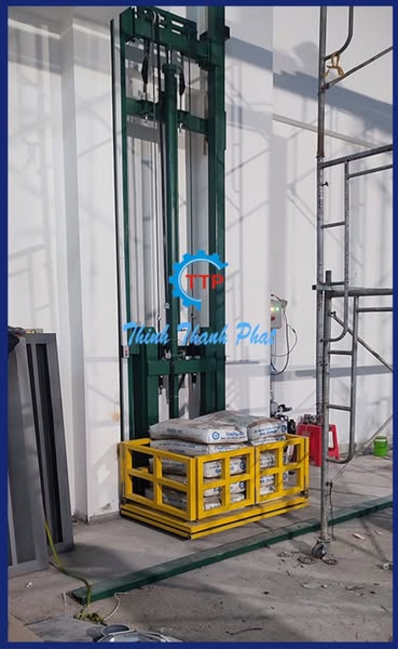 - Nhà xưởng, kho bãi: Vận chuyển pallet hàng hóa, thùng carton, nguyên vật liệu nhẹ giữa các tầng lửng hoặc tầng cao.