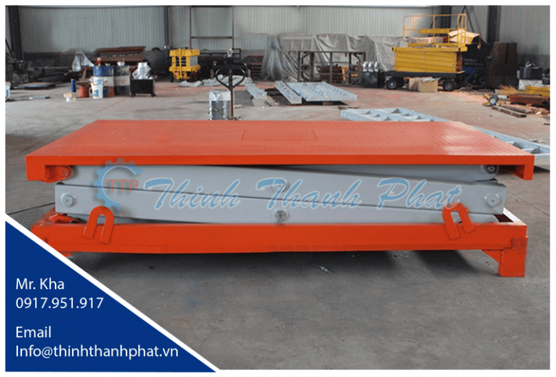 - Có cấu trúc hình chữ X nên bàn nâng có thể xếp gọn gàng trong hố dock, đảm bảo mặt bàn ngang với mặt sàn kho nên giúp tiết kiệm diện tích, tăng tính thẩm mỹ, chuyên nghiệp cho kho xưởng.
