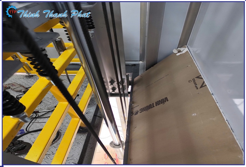 - Cơ chế nâng: Sử dụng hệ thống thủy lực (một hoặc hai xi lanh) để đẩy hoặc kéo cabin/sàn nâng thông qua cáp hoặc xích tải. Cơ chế này đảm bảo lực nâng ổn định, độ bền cao và ít gây tiếng ồn hơn so với một số loại tời điện cáp kéo thuần túy.