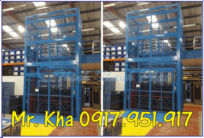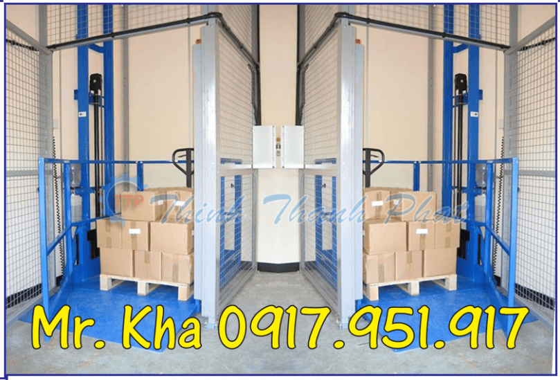 - Thang tải hàng - thang nâng thủy lực dùng để vận chuyển hàng hóa, nâng hạ máy móc trên trục sắt cố định, sử dụng lực truyền động xi lanh thủy lực, kết hợp với dây cáp tời nâng để đảm bảo an toàn tuyệt đối khi động cơ đang chạy.
